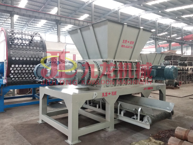 物料進(jìn)入塑膠撕碎機(jī)后通過外部雙軸電機(jī)進(jìn)行動力輸出帶動減速機(jī),減速機(jī)直連帶動內(nèi)部雙排刀軸旋轉(zhuǎn)對物料進(jìn)行剪切、撕裂和擠壓達(dá)到減小物料尺寸,物料受到交錯轉(zhuǎn)動的高硬度實(shí)用材料制成的刀具撕咬和剪拉而被劈裂、破碎和粉碎成低于設(shè)定尺寸后從下料口出排除至下輸送機(jī)。在撕碎過程中如若遇到難易破碎的物料或者韌性較大的物料時會在自動控制系統(tǒng)的作用下自動反轉(zhuǎn),并多次正反轉(zhuǎn),直至物料被破碎排出。